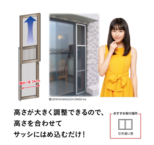 高さが大きくスライド調整可能!取付けカンタン網戸