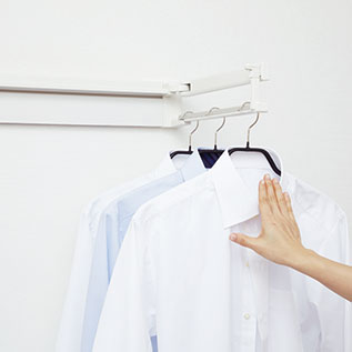 「干す、しまう」「掛ける」 をこれひとつで!室内物干×衣類掛け「ホシェア」
