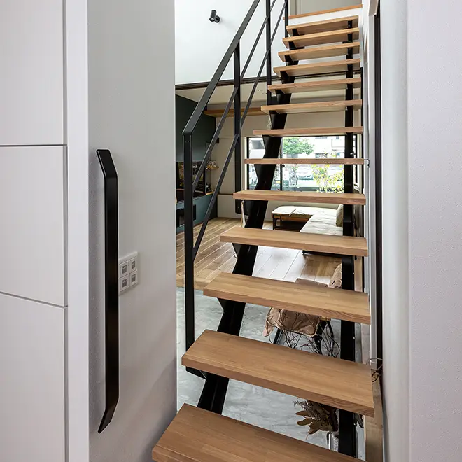 階段室の壁や吹抜けの腰壁、玄関の入口などに設置できる7種類の手すり