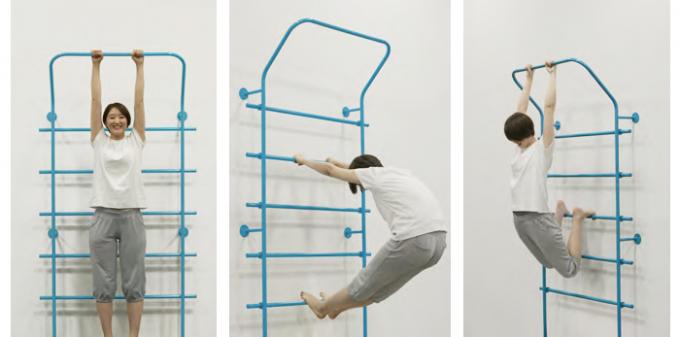 『WallBar』は姿勢の矯正や身体各部のトレーニングを目的に使用される器具の「ろくぼく」を戸建にも取り入れられるようにデザインしたものです。