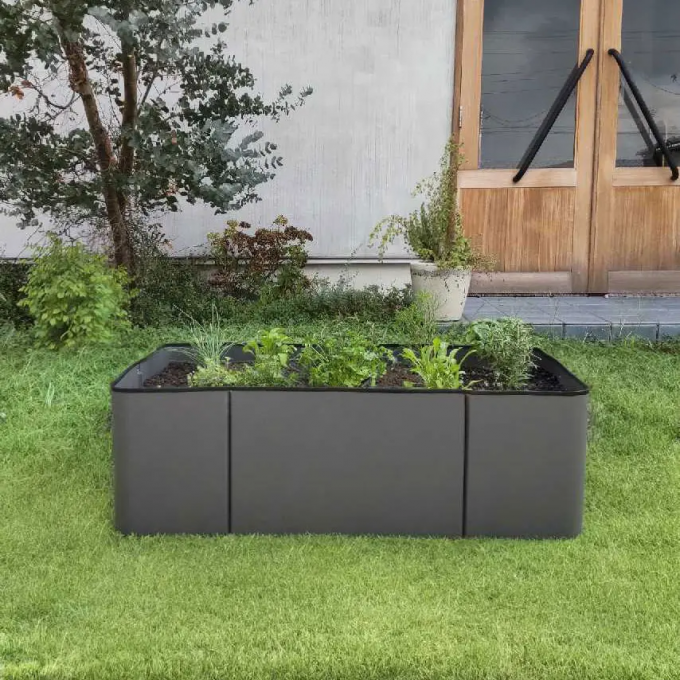 スチールという素材の特性上、薄くても非常に強度が高い点が特徴です。「一生使える畑」となるので、木製のものと異なり、買い替える必要がありません。スチールは錆びやすいと考える方も多いですが、メッキ加工と耐食性の高い屋外用塗料を使用することで、通常の使用方法では錆びにくく、屋外でも安心してご使用いただけます。