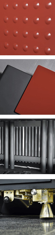「HOMRA」の表面に整然と並ぶのは、日本古来の鉄器を彷彿とさせるエンボスパターン。欧米の薪ストーブには見られない意匠性は、「日本らしさ」を演出しながら、このストーブを持つことの満足をさらに深いものにします。