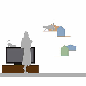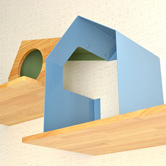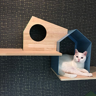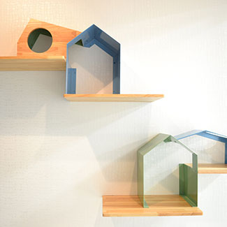 ■連続して設置し様々な導線を作ることで、猫が自由に動き回れる空間を壁面に作り出すことが可能。