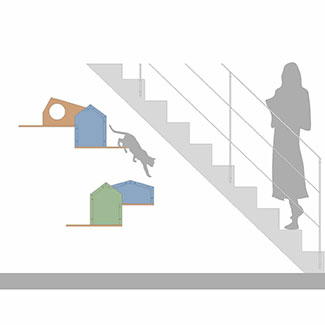 ■家をイメージした『House』では、2種類のデザインバリエーションを展開。 縦の動きを好むネコは室内で満足のいく動きがしづらく、不満を抱えて至るところで引っ掻いたりしてしまいがちです。