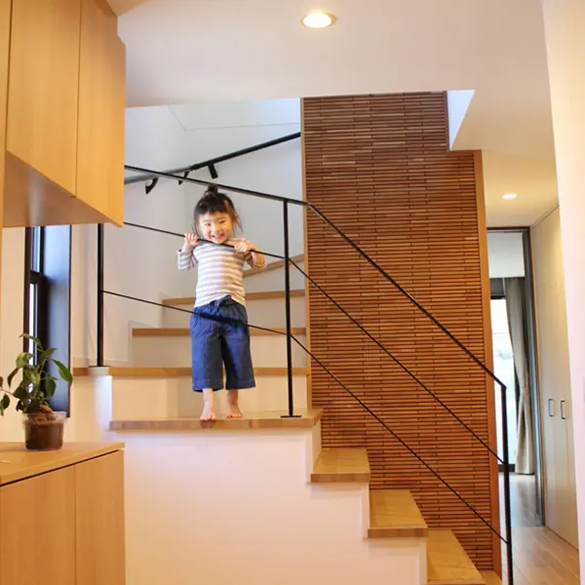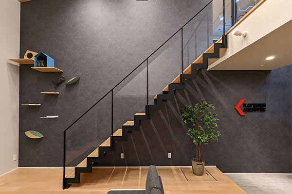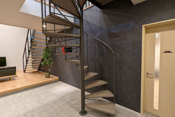 シースルーらせん階段『Modelia(モデリア)』は自社物件の強みを活かしフルスケールで設置しています。