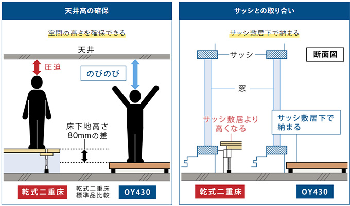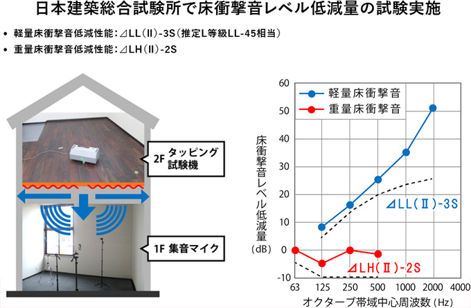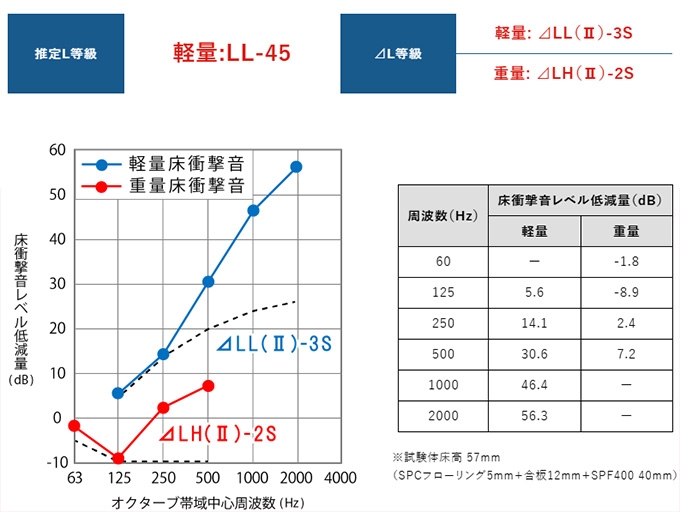 OY430は上に木質複合フローリングを施工してもLL-45を満たします。