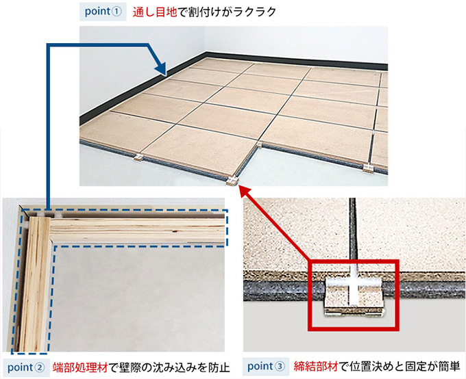 他社置き床材に対し、SPF400はゴミの発生が少なく、軽量で扱いやすいサイズ感であるため、スムーズに作業頂けました。また、隣室や階下への工事騒音が少なく、静音施工できる点を評価頂きました。