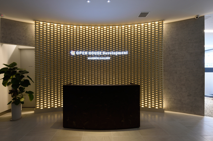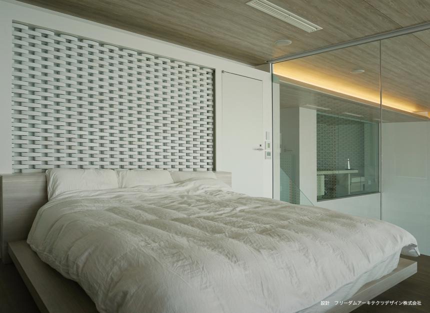 ■単一材料が数多く集まった面構成は空間を仕切る光の壁のようで美しく印象的です。