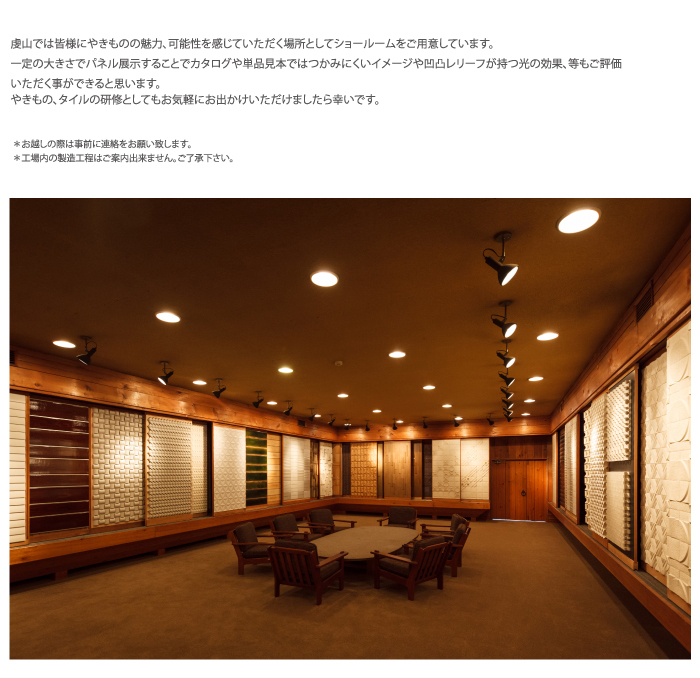虔山では「やきものの可能性」を追い求め、その具現化を通して魅力ある空間づくりに役立ちたいと願っており,不定期に新しい事例や新製品の案内を news letterで配信しております。