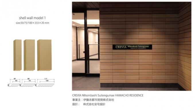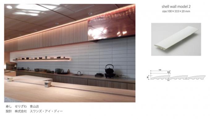虔山〈kenzan〉の装飾タイル シェルウォールモデルシリーズは、大中小3種類の幅の異なる組み合わせの演出ができる【モデル1】、曲面の重ねの美の【モデル2】、エッジきいたシンプルな直線のよる【モデル3】3種類があります。