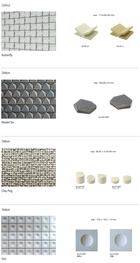 色、カタチ、素材により様々な表情で建築空間を彩るやきものをお楽しみください。