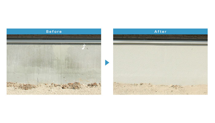 微弾性の塗膜が基礎部のコンクリート、モルタルの微細なひび割れを防ぎます。