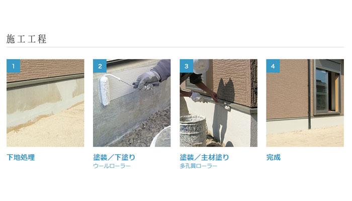 基礎ガードは主材と上塗りを兼ねたワンコートフィニッシュタイプです。施工の工程が少なく1日で施工が可能です。