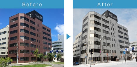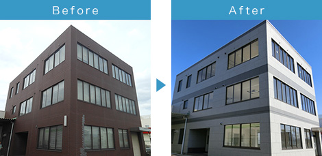 近隣建物と外観イメージを差別化。多彩なカラーバリエーションと豊富なモジュールの組み合わせで、優れた意匠を提案できます、下地を選ばず、曲面でも施工可能、自由なデザインが可能です。