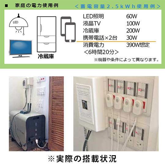 ・コンセントを差換えるだけで日常的に使いながら、停電時に指定したコンセントが使えるシステム。