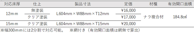 木製床ガラリ フロアーベント[ストライプ]新色・新サイズ発売