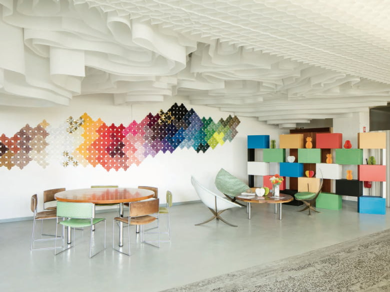 さらにカラードロップは規格巾2400㎜を生かした迫力のあるディスプレイが可能で、店舗・オフィスの間仕切りからディスプレイ、そしてサイン行灯など多様な使い方ができる不織布のような特殊紙ですので、今までに無い空間デザインを数多く生み出しています。