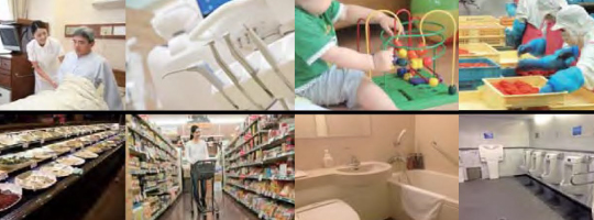介護施設や保育園などでは細菌の感染から高齢者や幼児を守り、さらに不特定多数が足を運ぶ施設では人々を安全な空間を作ります。