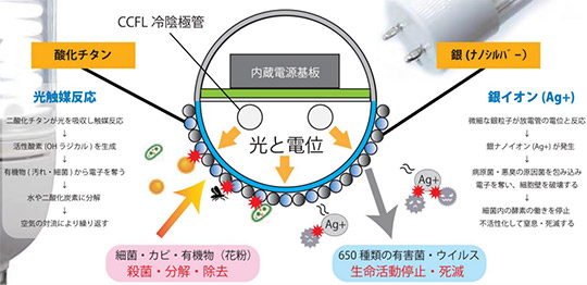 抗菌照明:点灯するだけで除菌・消臭・防カビ効果がある省エネ照明。