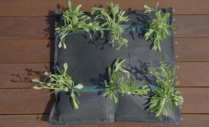 標準寸法は50cm角で、1㎡の荷重は40kgと軽量なため、様々な場所で使用されています。壁面緑化や折板屋根の緑化では、15cm×100cmのサイズを使用します。袋は、型を持たないので、現場に合わせた寸法のオーダーが可能です。