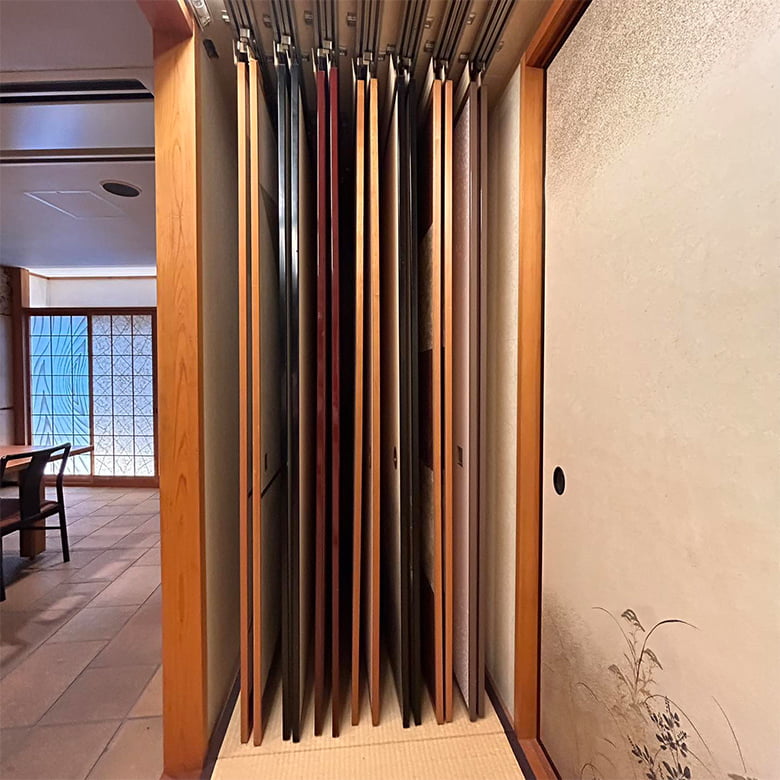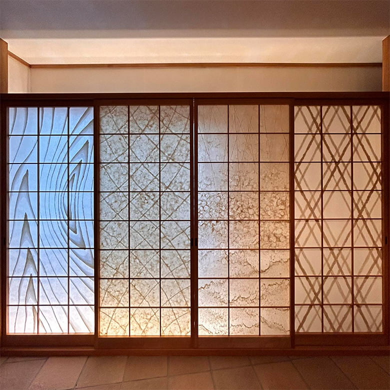 日本の伝統文化である和紙を使い壁紙や襖紙、障子紙を展示した「和」のショールームです。