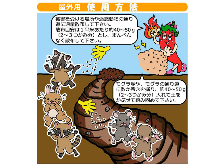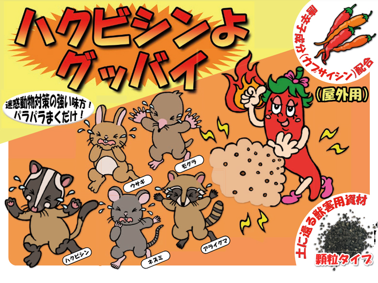 迷惑動物対策の強い味方!唐辛子成分(カプサイシン)配合で動物の味覚・嗅覚を強烈に刺激