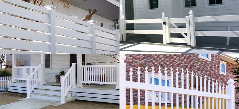 ピケットやパネルが上のレールから突き出していない形状が特徴です。上部が平らなので、スッキリした仕上がりになります。