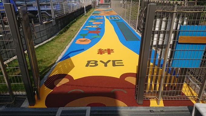 幼・保育園園庭、公園遊具下舗装、歩道、身障者施設、介護施設、ジョギングコース、歩道橋など