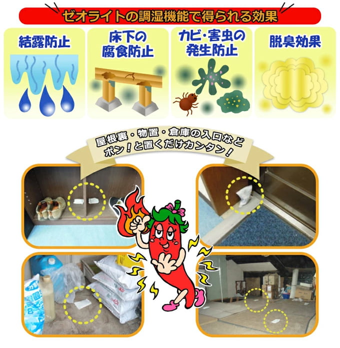 「天然ゼオライト」と「高濃度カフサイシン」配合、即効タイプと遅効タイプをミックスしています。
