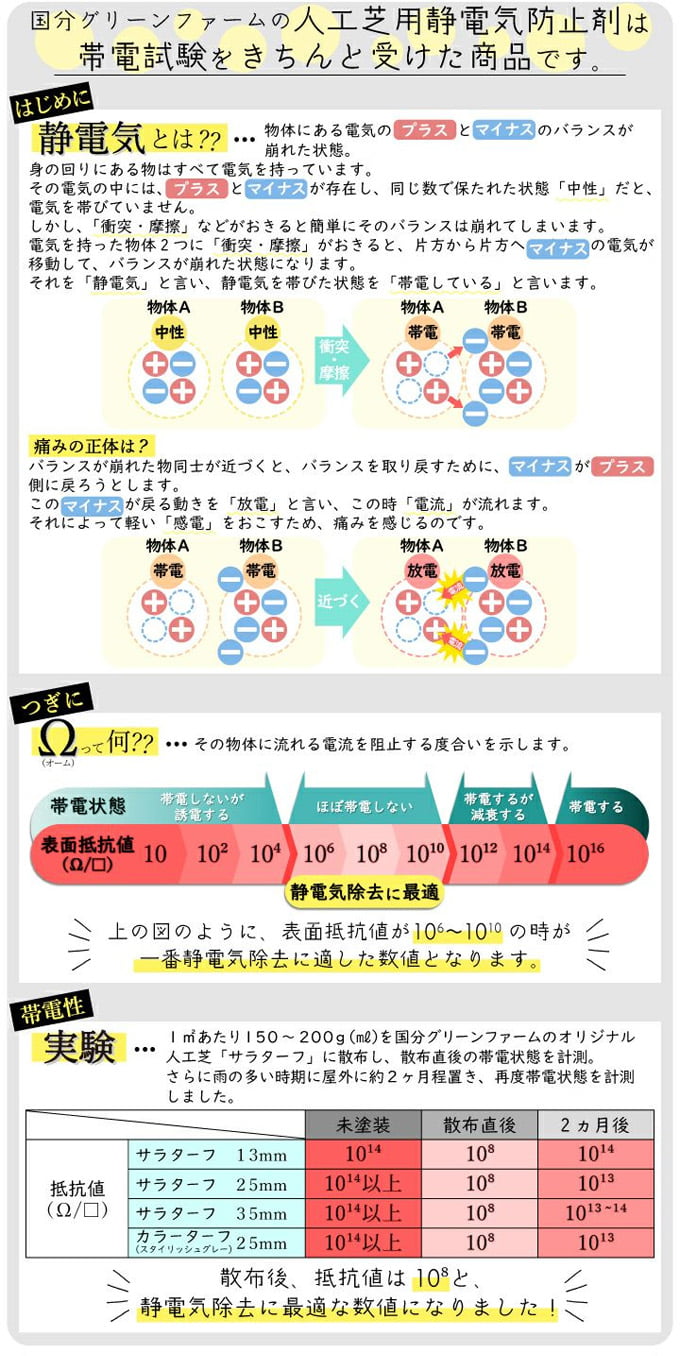 人工芝の嫌な電気を防止する「KG静電気防止剤」をご紹介
