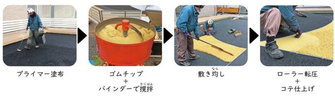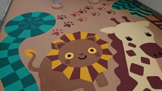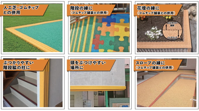 幼稚園や保育園、病院や養護施設など、転倒時の安全対策や景観形成のための舗装整備に採用されている「カラーゴムチップ」と「ゴム製ノンスリップ」をご紹介いたします。