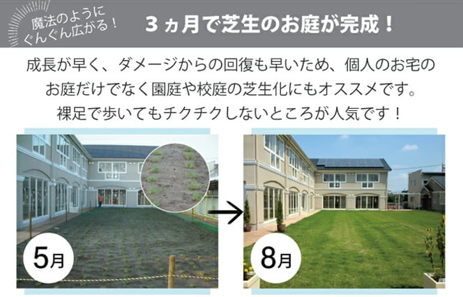 校庭緑化、園庭緑化など、広面積の芝生化を低予算で実現できます。