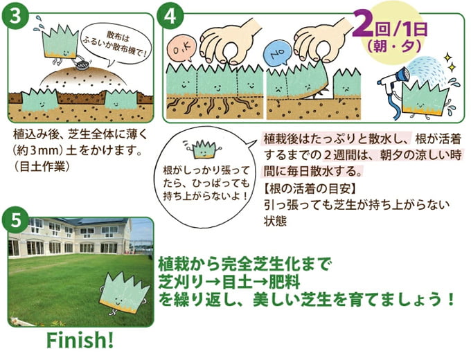 ・繁殖力が旺盛なため、こまめな管理を必要としますが、踏みつけによる損傷の回復が早く、光沢のある美しい芝生が期待できます。