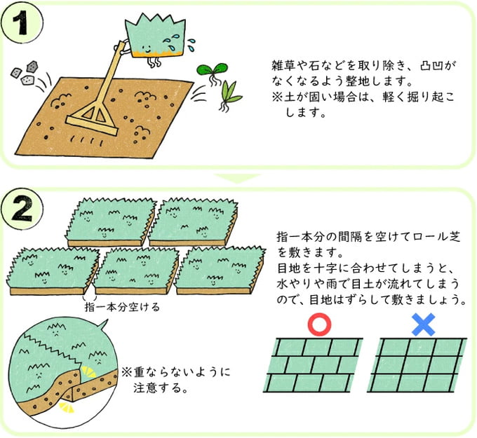 ロール芝は活着が早く、養生期間が短縮できるため、すぐに芝生化したい方にオススメです。