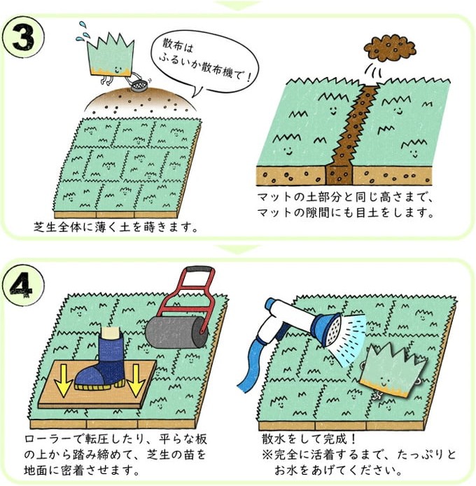 マットから根が生え出して、地面にしっかり活着するとマットが持ち上がりません。