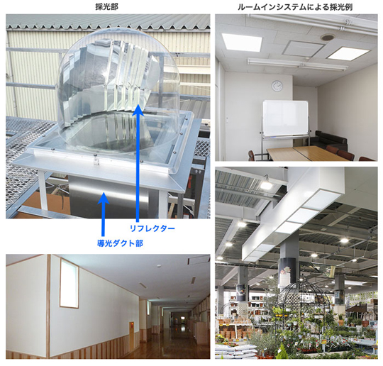 屋上で採光し、導光ダクトで光を伝達。従来は窓からの採光のみだったオフィスや廊下などを、自然光で照らします。窓辺だけでなく部屋の奥でも、陽のうつろいが感じられます。
