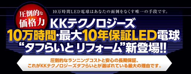 KKテクノロジーズの製品は、自社開発の電源により、電源コンデンサを使用していないLED照明です。