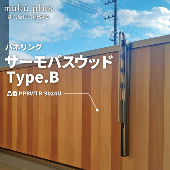 従来のサーモバスウッドの素材に、サーモ処理を施し商品の色違いを人工的に作り出しました。温度差の組合せで、Type.A とType.Bをラインナップしています。