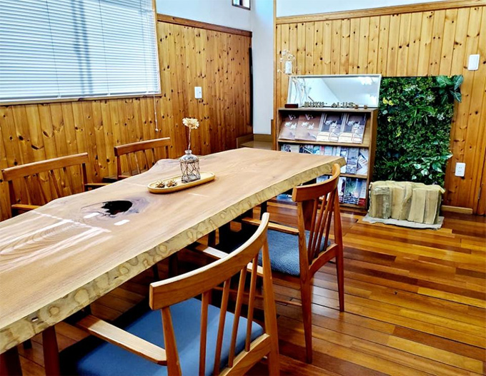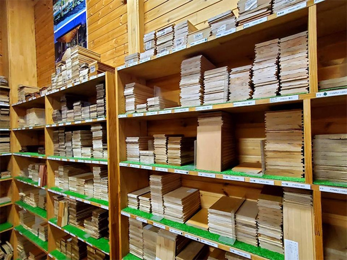 木の温もりを存分に感じるmukuplusショールーム。来年にはさらにバージョンアップのリニューアル改装を予定しているとのこと。サンプルを手に取りながらじっくりイマジネーションを膨らませられる落ち着いた空間づくりとなっております。ぜひご予約の上、お気軽にご来場くださいませ。