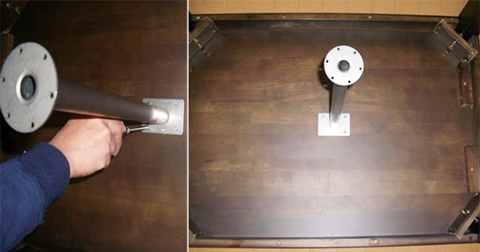 テーブルの裏面中央に、耐震棒をビスで留めるだけの簡単施工です。
