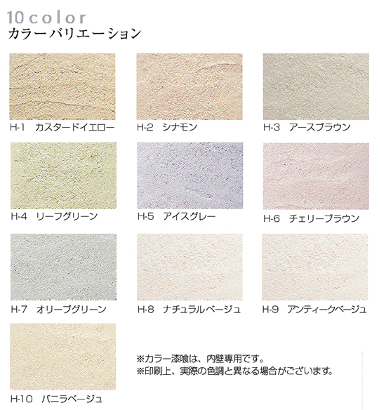 自然素材の漆喰壁に温かみのあるカラー10色をご用意しました