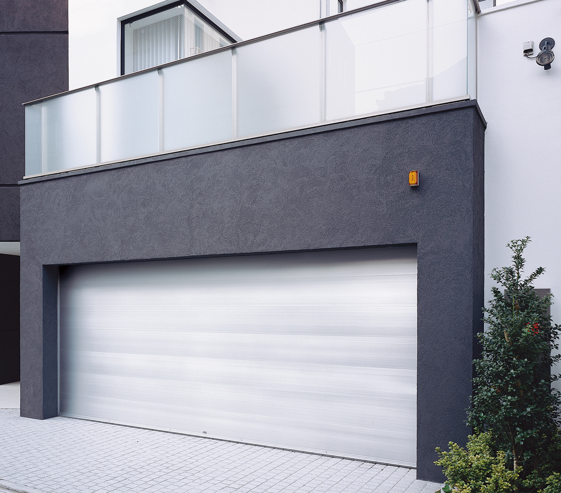 フラットアルミの光沢ある質感で見る人を魅了するガレージドア