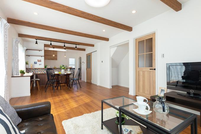 梁の見える空間は、天井に奥行きが生まれ、木の温もりを感じることができます。