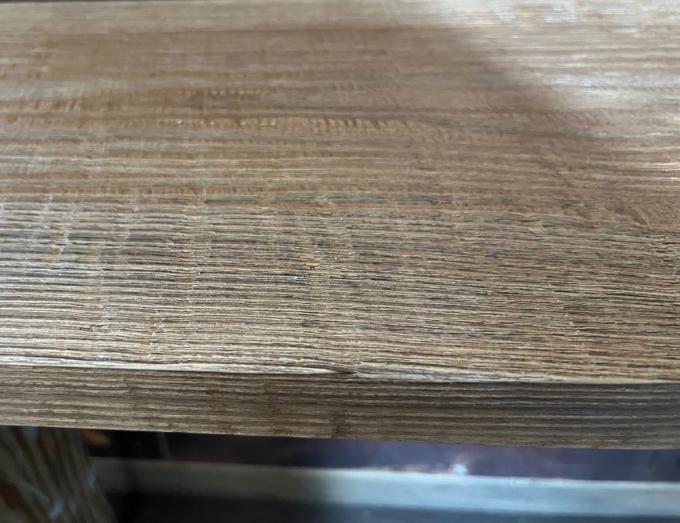 「杉」は柔らかい樹種の為、傷がつきやすい性質がありますが、その分使い込むほどに風合いを増します。 また、オールドシダービームスで作った化粧板はアンティーク加工を施しているため最初から凹凸があり 多少の傷がついても目立ちにくいという利点があります。幅や奥行もオーダーメイドで製作できます。