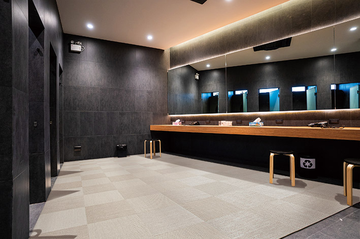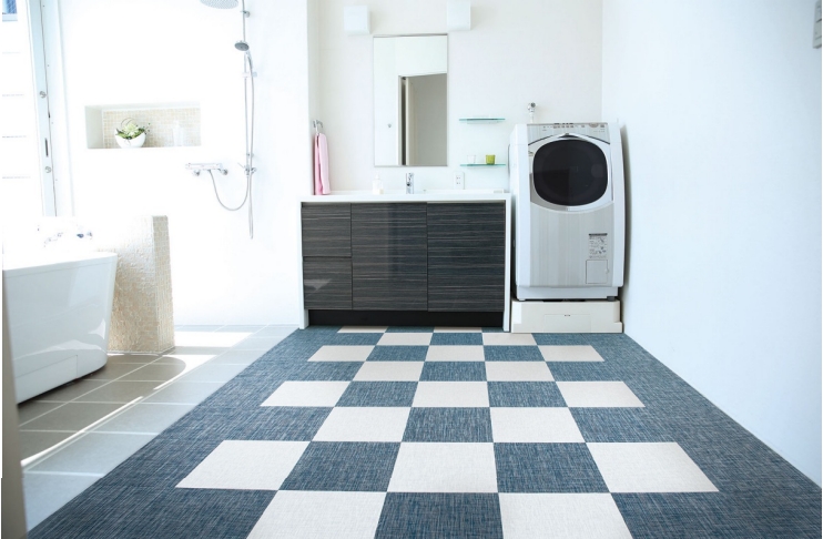 防水使用で水回りにも使える防炎、軽量、省施工の高機能床材