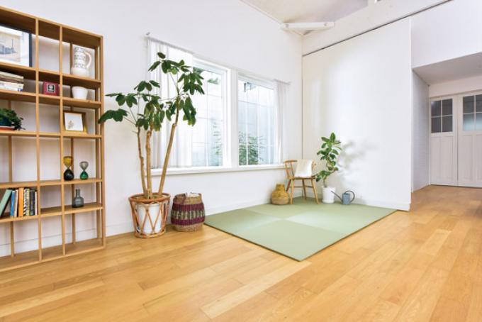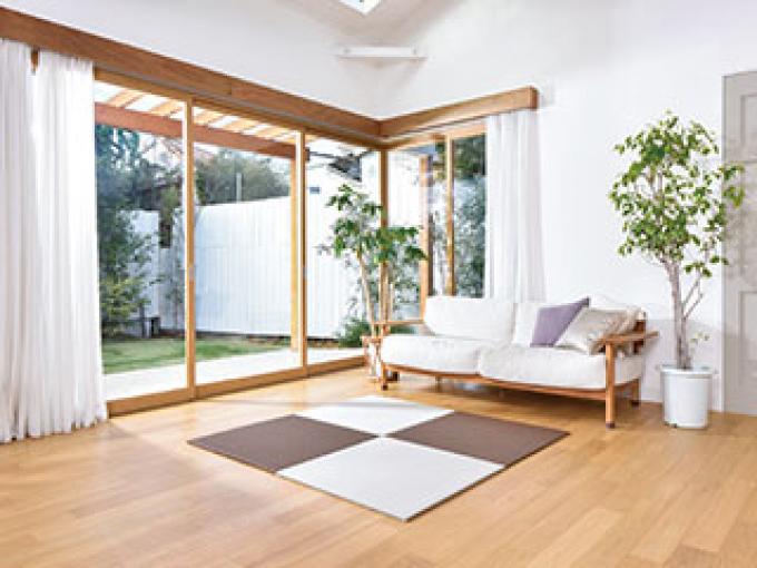 ・陽のあたる、のんびりした時間を過ごす空間。遊び心をくすぐり、自由な設計が楽しめる床材「花たたみHAL」。日々の生活に快適空間を提供します。