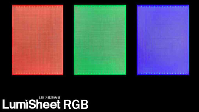 RGB(フルカラー)のLEDが内蔵されたフルカラー調光可能なLED内蔵型導光板。