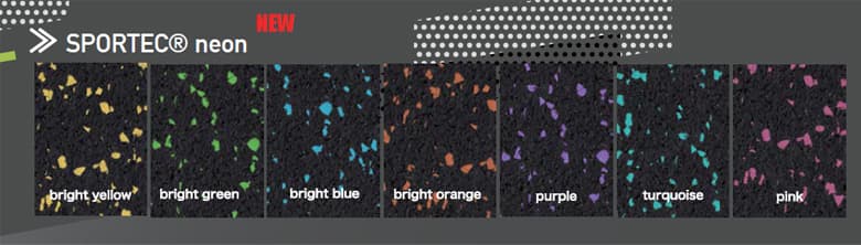 SPORTEC® neonはSPORTEC® colorと同様の優れた性能とカラー展開がある製品です。 フィットネス、スタジアム、小売店、展示ホール、機器保管室、アイススケート場等、 あらゆるニーズに対応可能な、耐久性が高くお手入れが簡単、撥水性がある床材です。 鮮やかなEPDMのカラーチップが組み込まれており、デザイン性の幅を広げます。 魅力的なデザインだけでなく、安全で快適な空間をご提供します。