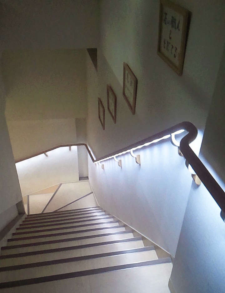 安全、安心。人にやさしい光で、魅せる。光る補助手すり