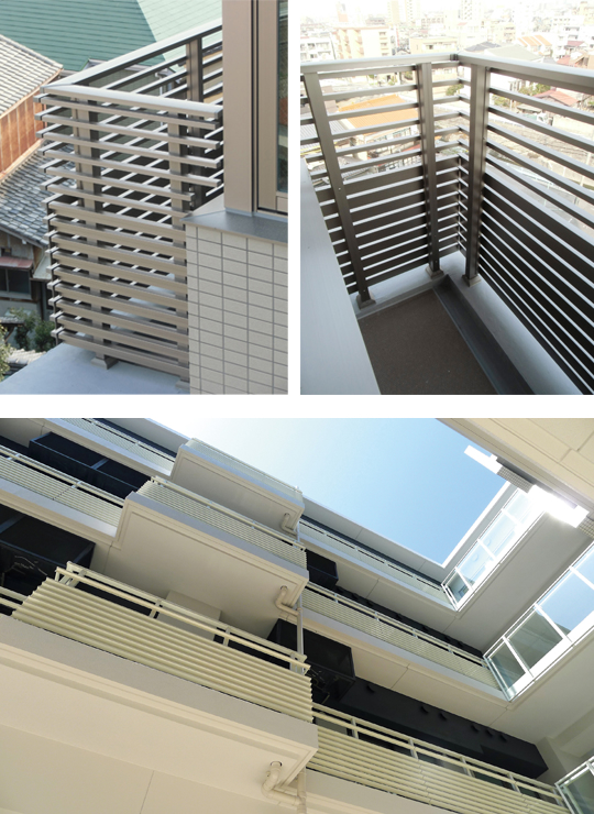風を通し、視線を遮る 「P型ルーバー手すり30×55」
